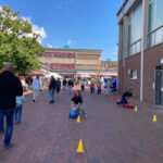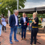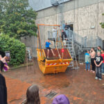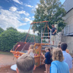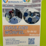 Ab 15 Uhr ging das Jubiläum in ein großes Schulfest über. Auf dem Schulhof erwarteten die Besucher zahlreiche Mitmachaktionen und Essensstände, die für eine fröhliche Atmosphäre sorgten. So konnten sich die Anwesenden an einer vom Förderverein der IGS gesponserten, acht Meter hohen Kletterwand probieren oder ihre Zielgenauigkeit unter Beweis stellen. Einige Mutige setzten sich dabei auf eine Schaukel überhalb eines Wassertanks und riskierten eine feuchtfröhliche Überraschung, sollte ihr Gegenüber die Zielscheibe treffen – was zur Belustigung aller immer wieder gelang. Dabei riskierten nicht nur Schülerinnen und Schüler ein kaltes Bad, sondern auch einige Lehrkräfte, die sich für diesen Spaß nicht zu schade waren. Selbst ein kurzes, kräftiges Gewitter konnte die gute Stimmung nicht trüben. Bei Bratwurst, Kuchen, Eis, einer großen Tombola und vielen kleinen Spielangeboten war der Nachmittag schnell verflogen. Besonders danken möchten wir den kooperierenden Firmen, die es sich nicht nehmen lassen wollten, auch beim Schulfest der IGS Bramsche Präsenz zu zeigen. Schon vorab hat die Schulgemeinschaft beschlossen, 30% des Erlöses an den Verein Amal, der in Bramsche wertvolle Arbeit auch für Kinder leistet, zu spenden. Uns freut es, dass der Verein Amal ebenfalls auf dem Schulfest mit einem Infostand vertreten war. Der Rest des Erlöses soll in die Schulhofgestaltung fließen. Die Schülerschaft wünscht sich einen Boulderblock, um auch kletternd hoch hinaus zu kommen.