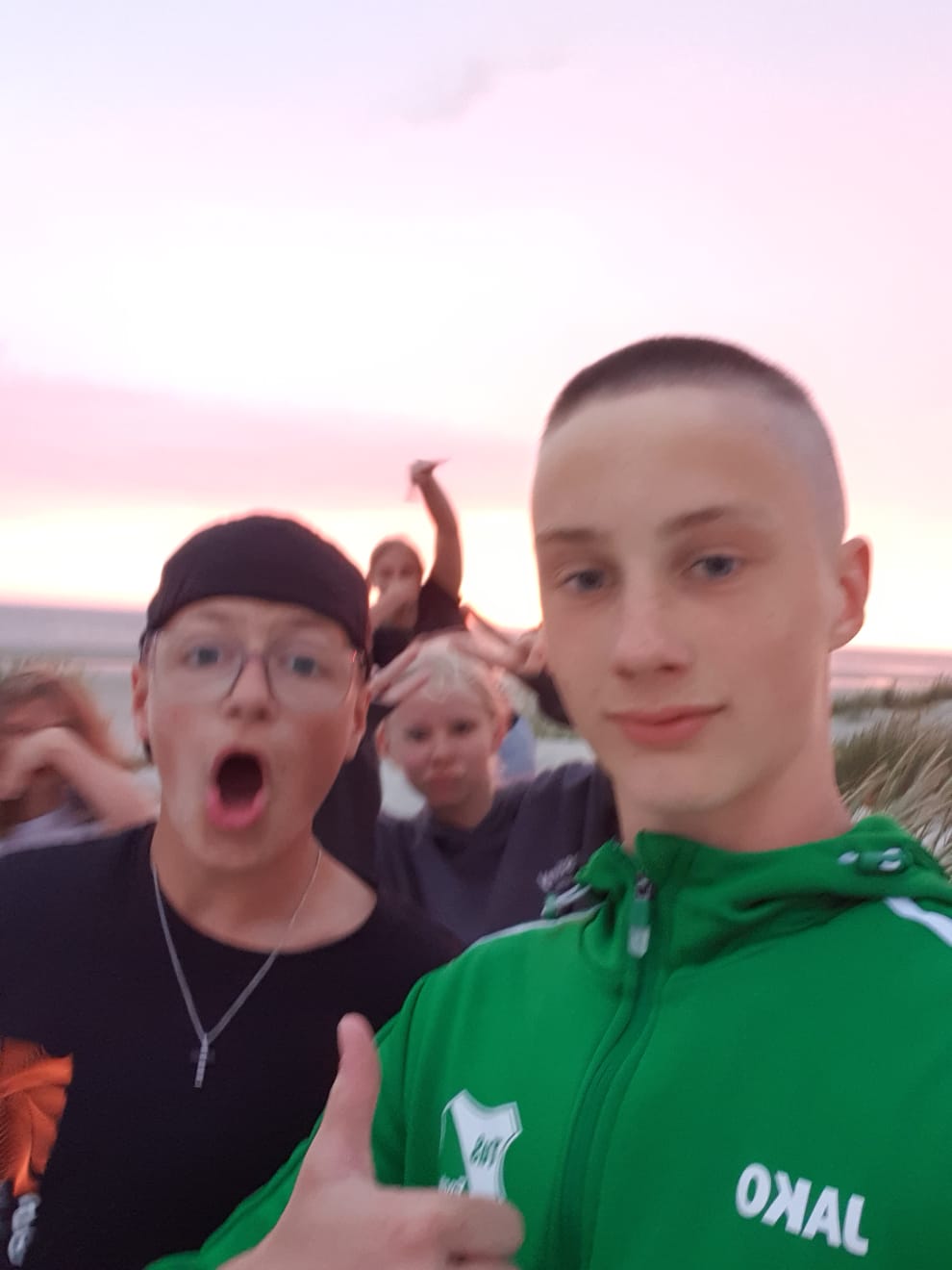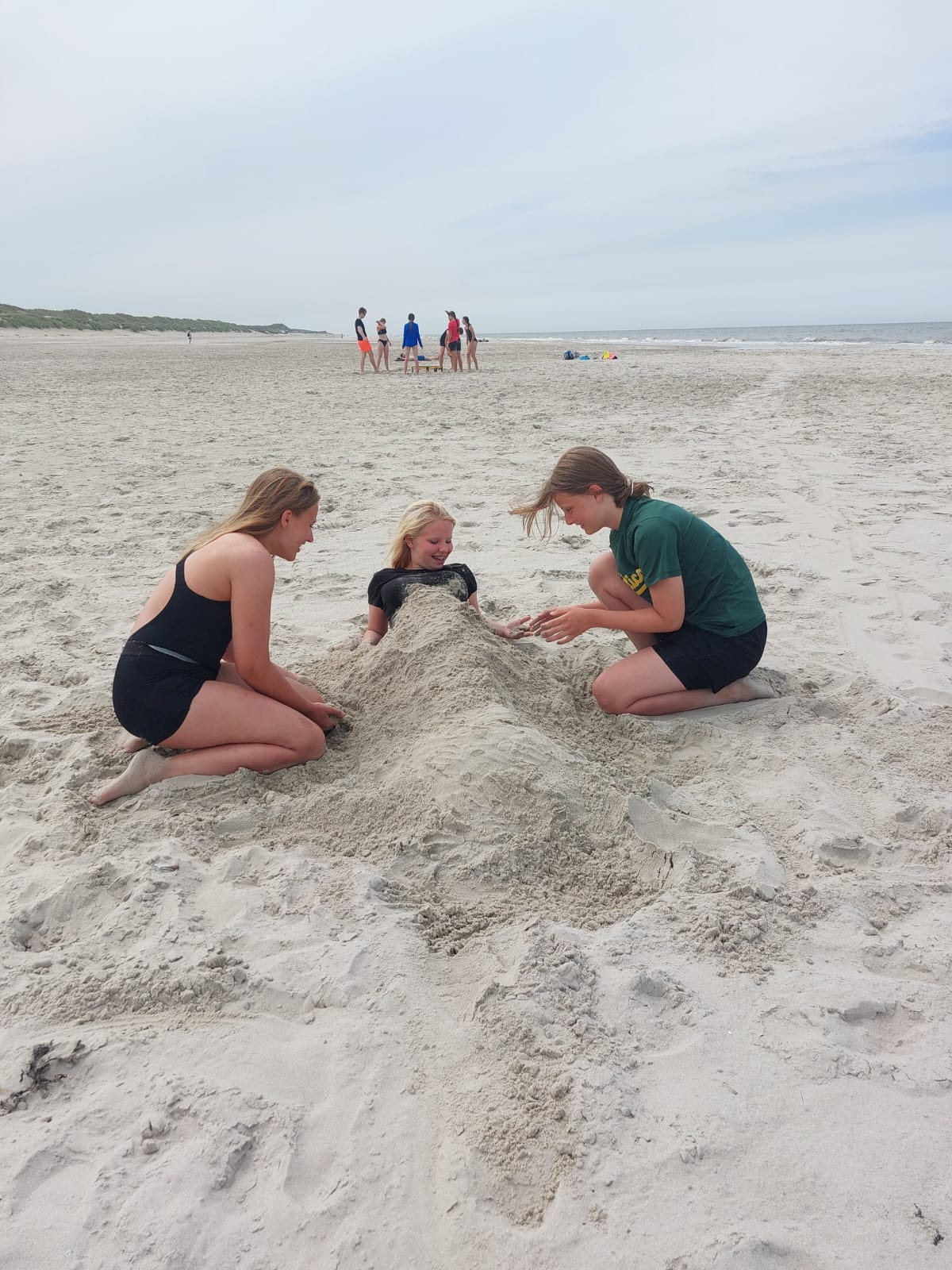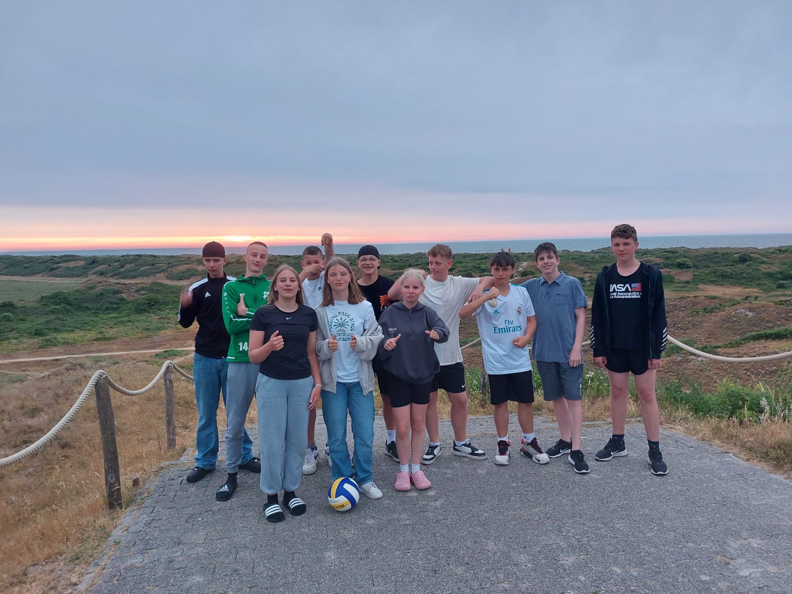 Am Abend sind wir dann mit Herrn Weichers über die Dünen zum Meer gelaufen und schwimmen gegangen. Nachdem Abendessen haben wir Volleyball gespielt bis wir irgendwann in die Mensa gegangen sind und mit Schulsportassen anderer Schulen UNO gespielt.